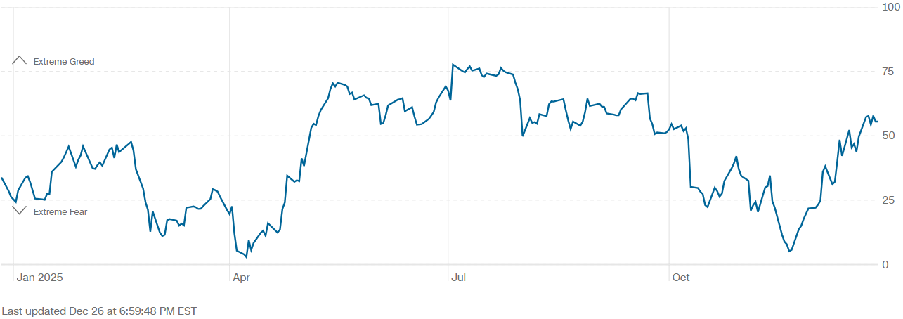 공포탐욕지수는 56입니다. 탐욕입니다.