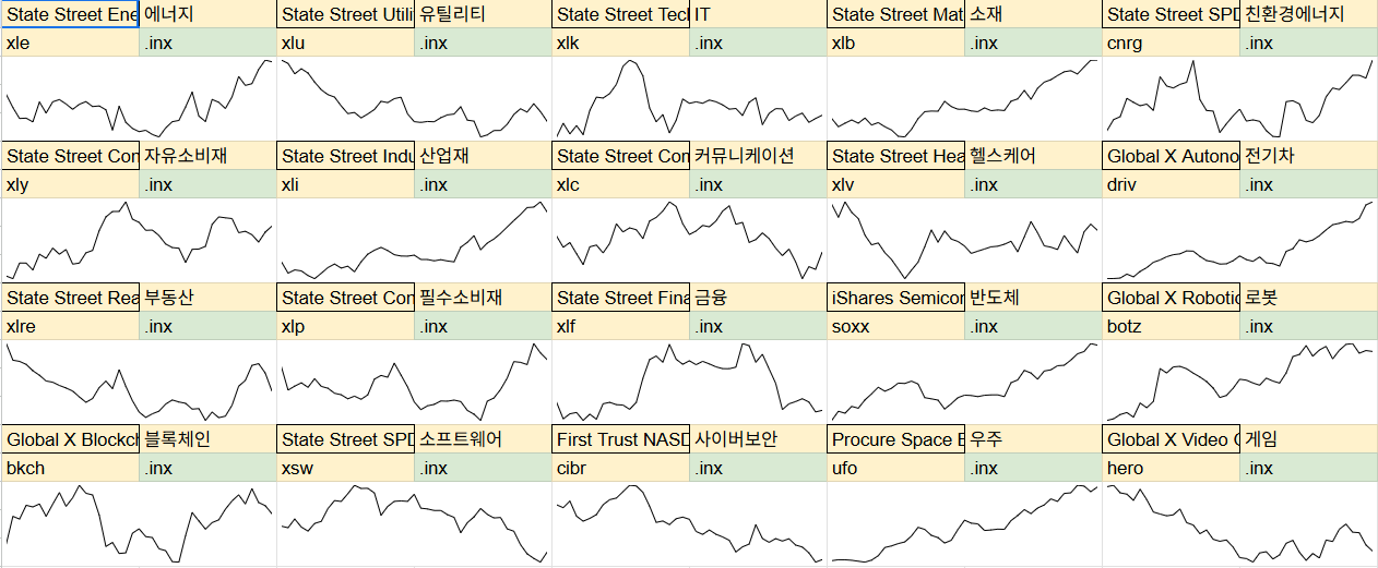 에너지, 소재, 산업재, 전기차, 반도체, 우주 등 이 S&P500보다 성과가 좋았습니다.